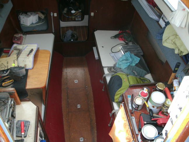 Es lo que tiene el llevar ya 4 meses viviendo en un apartamento, que el mantener el barco ordenado y limpio ya no es tan importante como cuando vives en él... pero vamos, ahora ya está bien, después de colocar la escotilla del tambucho en su sitio me dediqué a hacer limpieza general, lo que ocurre es que casi nunca llevo la cámara de fotos encima... los aparatos electrónicos cada vez me pesan más en la mochila, creo que me estoy volviendo cada vez más analógico y menos digital...