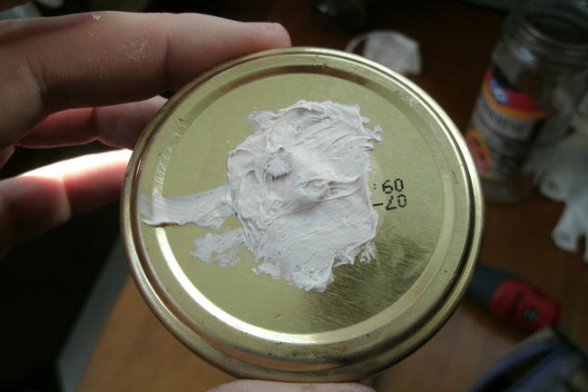 La forma de hacerlo es simple, lo primero que hace falta es una brocha buena para barnices, lo de que sea buena es muy importante para que los barnices queden bien, tampoco tiene porque ser muy cara, esa de la foto va bien y la compré en el carrefour hace unos 5 años por unos 4€, si se cuida dura toda la vida; hay que cortarla de tal forma que al cerrar el tarro quede unos milímetros por encima del fondo, y hacerle un par de agujeros para poder atornillarla a la tapa: