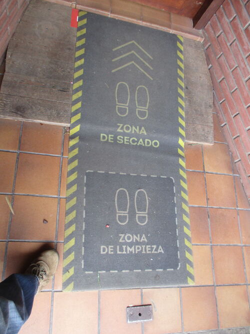 Después hay detalles que no dejan de sorprenderme, por ejemplo la entrada a este estanco, con "zona de limpieza" y "zona de secado", lo que hay/había que hacer por comprar un triste sello de Correos: